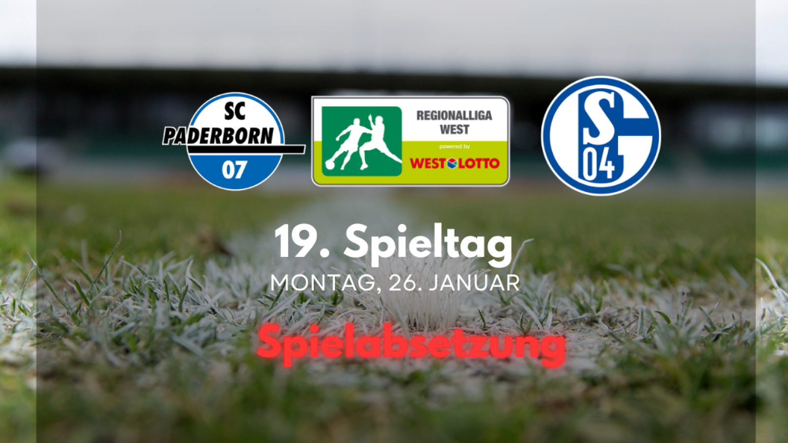 Der Spielleiter Rheinhold Spohn hat witterungsbedingt das für Montag, 26. Januar 2026, 13 Uhr, vorgesehene Spiel SC Paderborn 07 U23 gegen FC Schalke 04 U23 witterungsbedingt abgesagt.