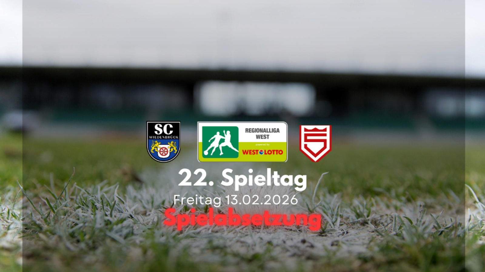 Der Spielleiter Reinhold Spohn hat witterungsbedingt das für den Spieltag vorgesehene Spiel des SC Wiedenbrück gegen Sportfreunde Siegen abgesetzt.