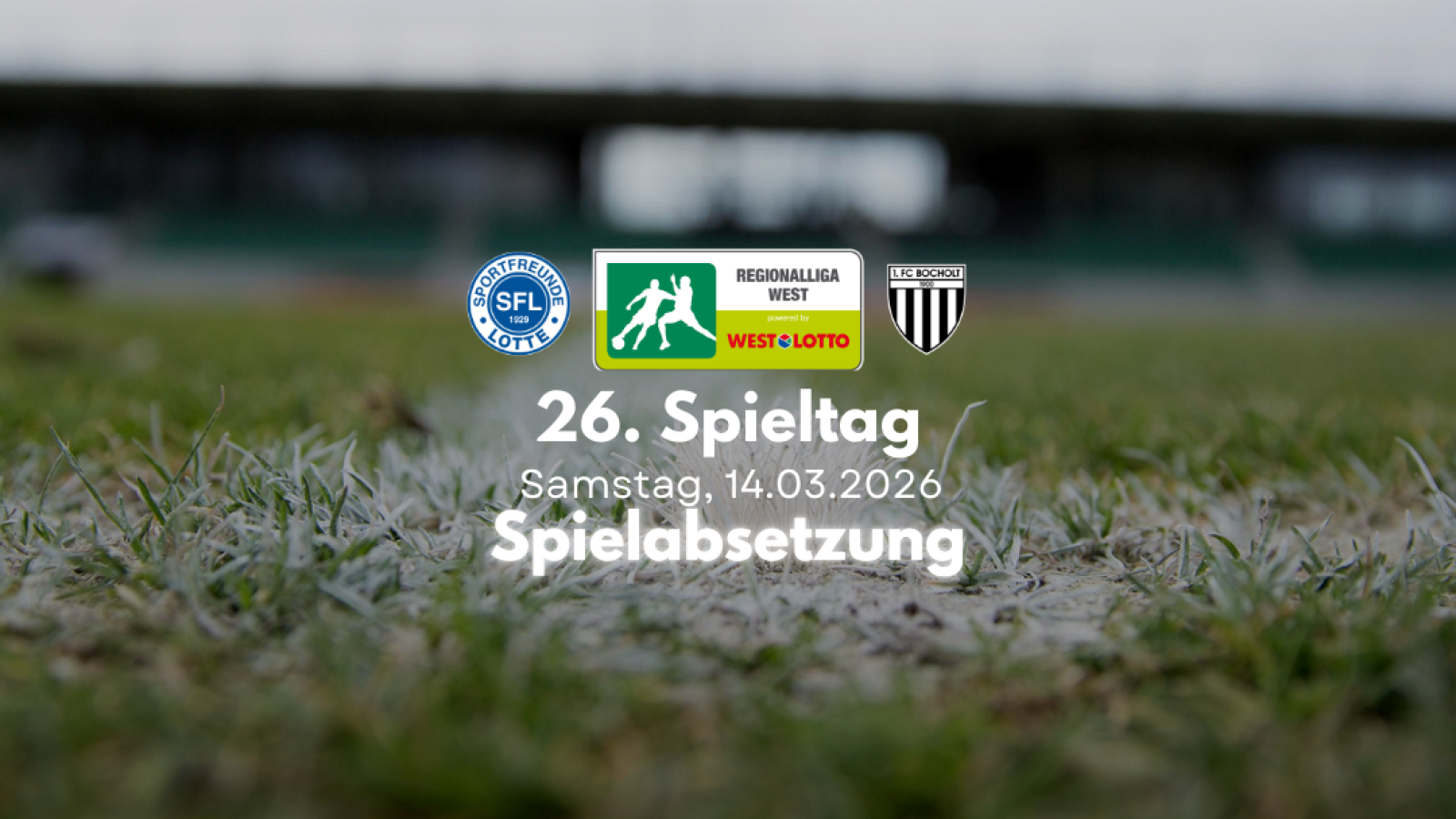 Der Spielleiter Reinhold Spohn hat witterungsbedingt das für den Spieltag vorgesehene Spiel von Sportfreunde Lotte gegen 1. FC Bocholt abgesetzt.