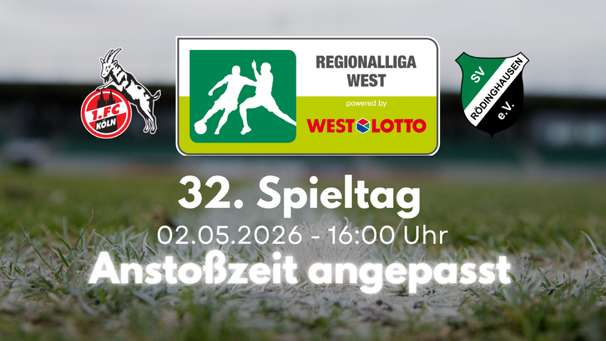 Neue Anstoßzeit am 32. Spieltag: Die Partie 1. FC Köln U23 gegen SV Rödinghausen findet am 02.05.2026 um 16:00 Uhr statt.